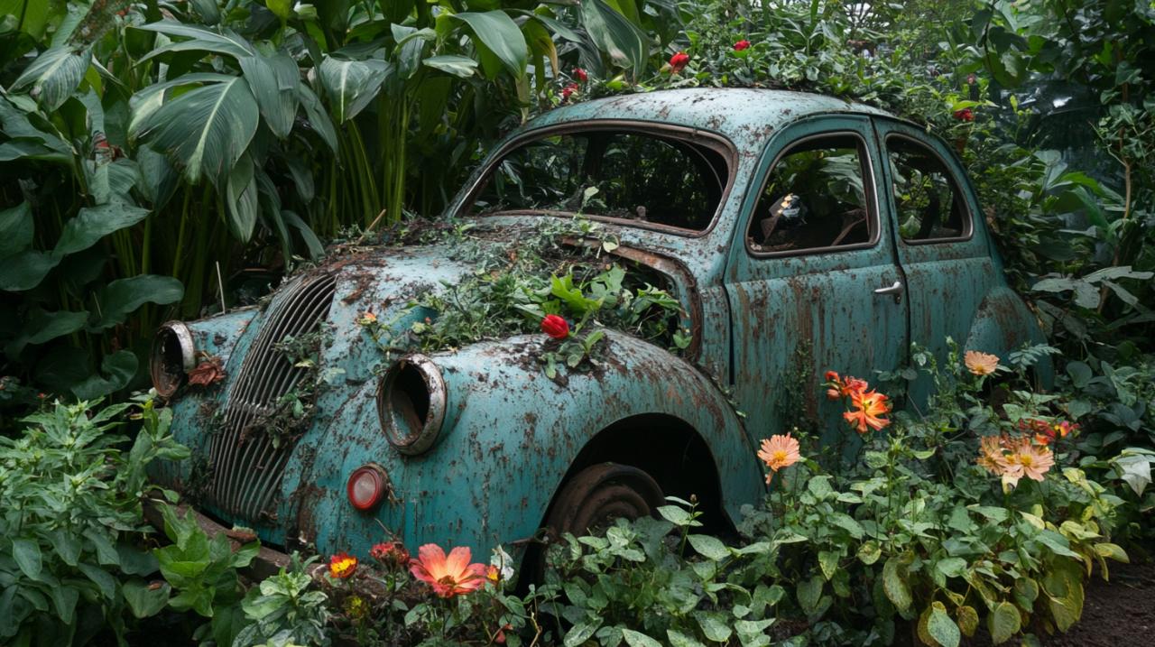 Transformer une vieille voiture en objet décoratif représente une tendance artistique qui allie créativité, écologie et originalité. Cette pratique, qui s'inscrit pleinement dans une démarche d'économie circulaire et de développement durable, permet de donner une seconde vie à des véhicules hors d'usage tout en créant des pièces uniques pour embellir votre intérieur ou votre jardin. L'upcycling automobile séduit de plus en plus d'amateurs de bricolage créatif et d'art recyclé, inspirés notamment par des artistes comme Benedetto Bufalino qui a fait de la transformation de véhicules sa signature artistique.